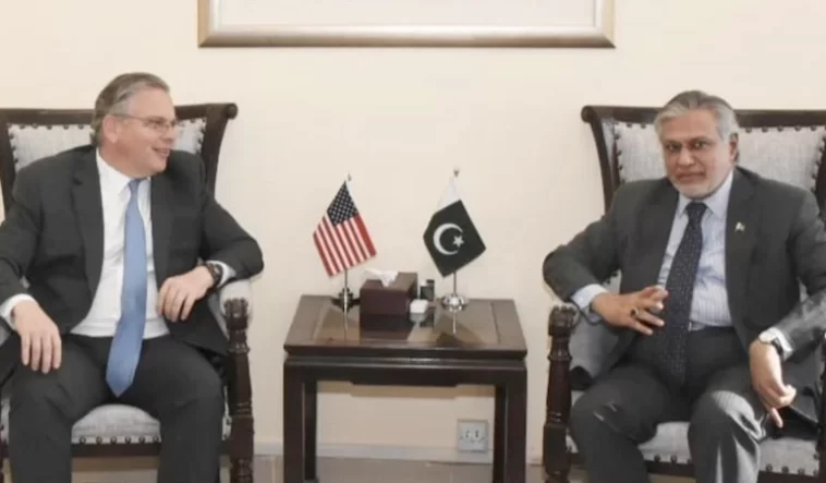 Pakistan’s Finance Minister, Senator Ishaq Dar, held a meeting with the US Ambassador to Pakistan, Donald Blome, to discuss measures taken by the coalition government to address the economic challenges that the country is grappling with at the moment.
